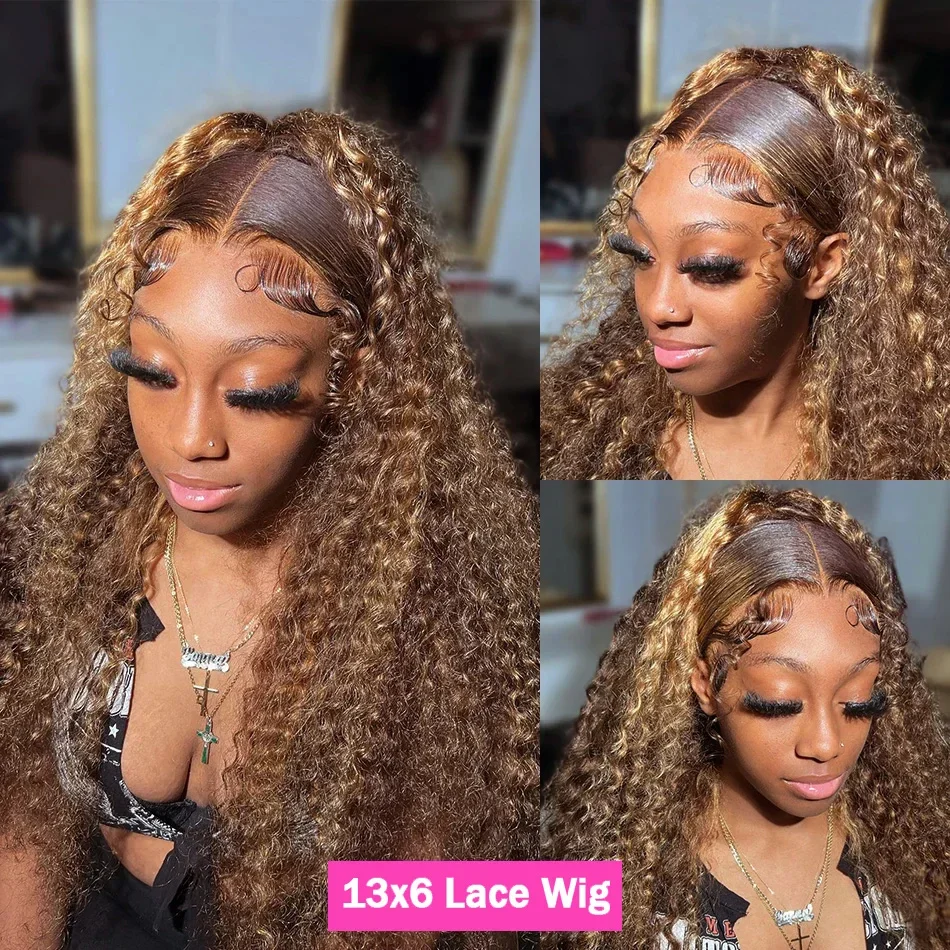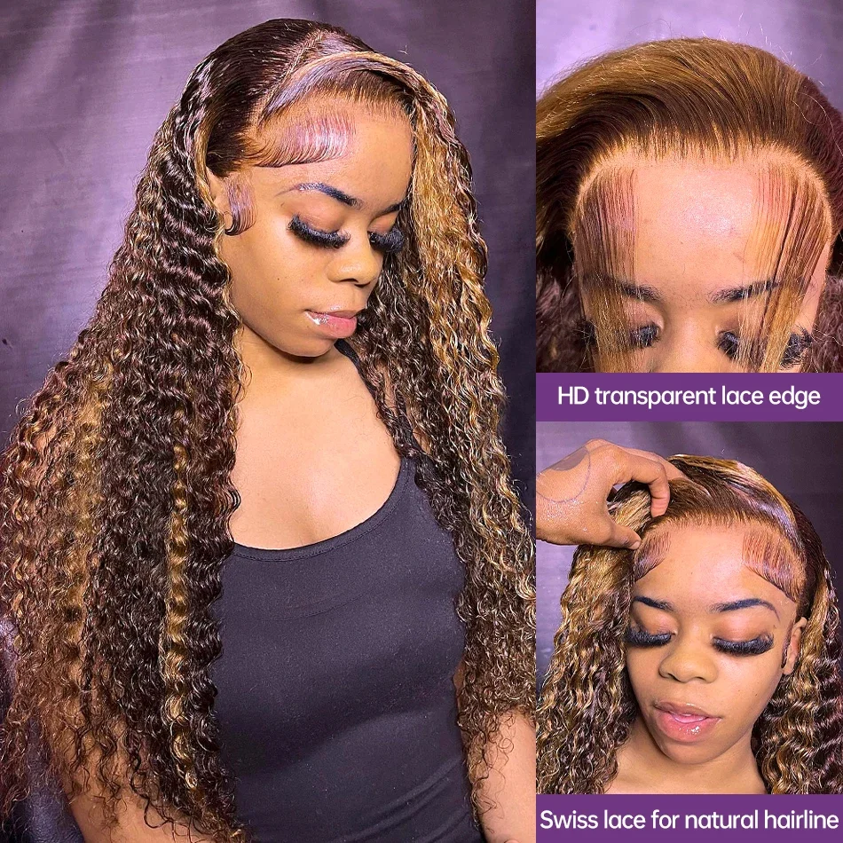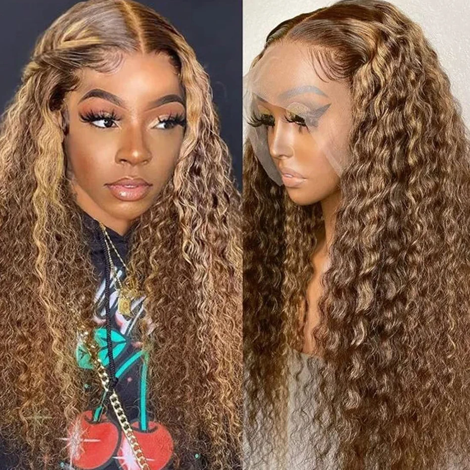 HD Transparent Highlight Wig Human Hair Honey Blonde Lace Front Wigs For Women Curly Human Hair Wig Deep Wave Lace Frontal Wig