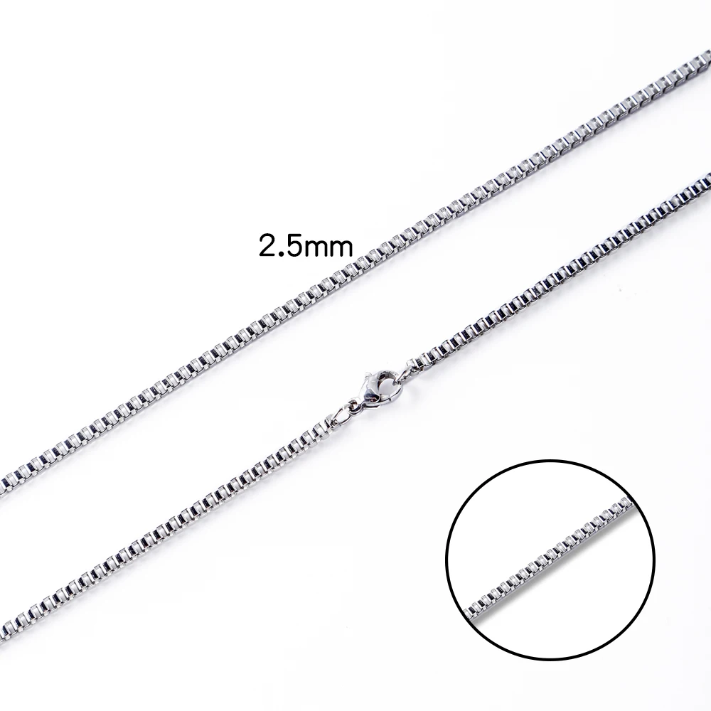 HIYEE Men's Thin Box Chain Necklace,1.5/2/2.5/3MM Stainless Steel Chain Link Collars Gift,Male DIY Jewelry,18 to 24 Inch Parts