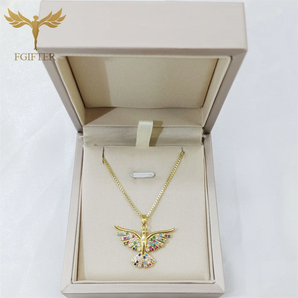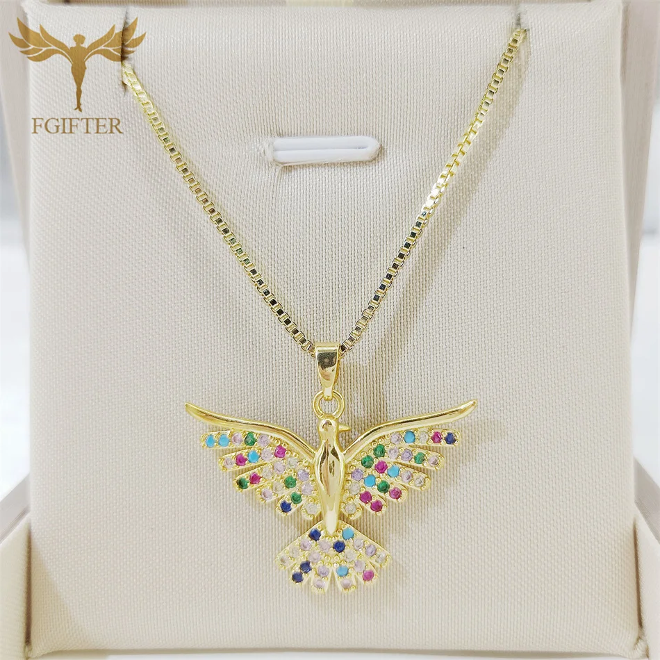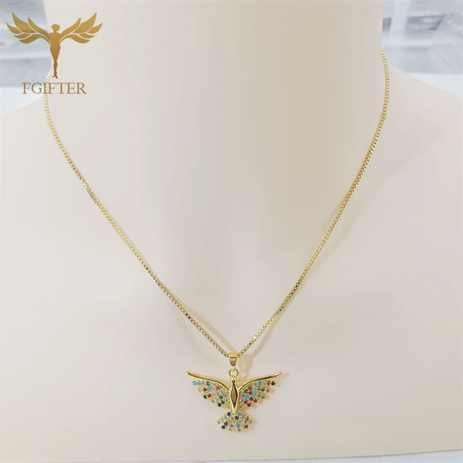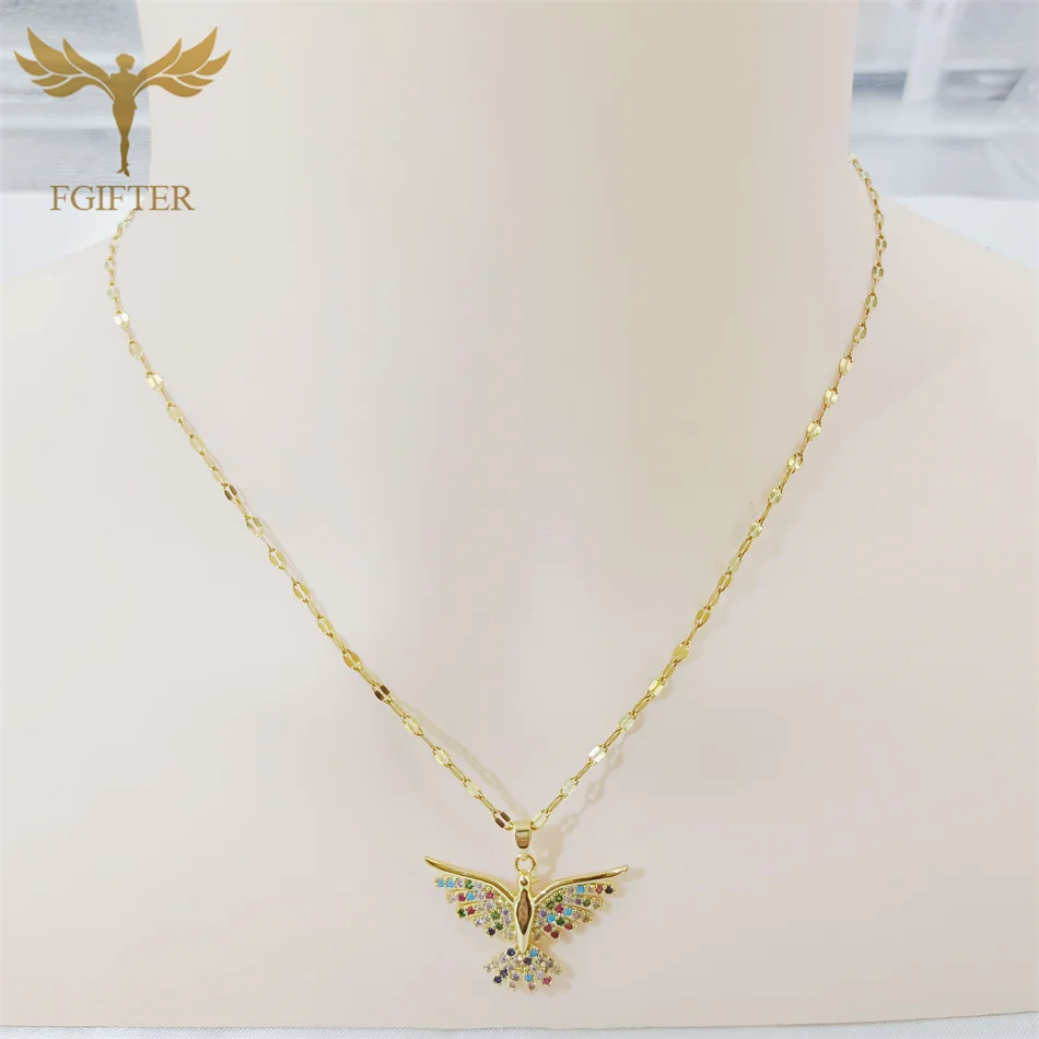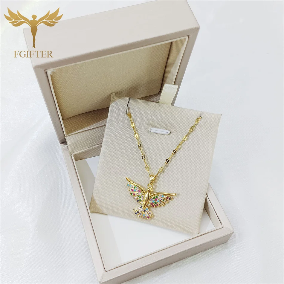 Luxury Graces Colored Phoenix Zircon Copper Pendant Necklaces Stainless Steel Chain High Grade Bird Choker Women's Party Jewelry