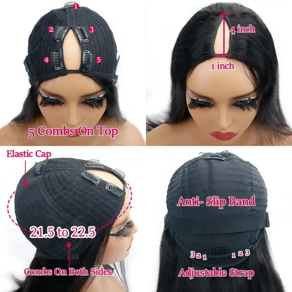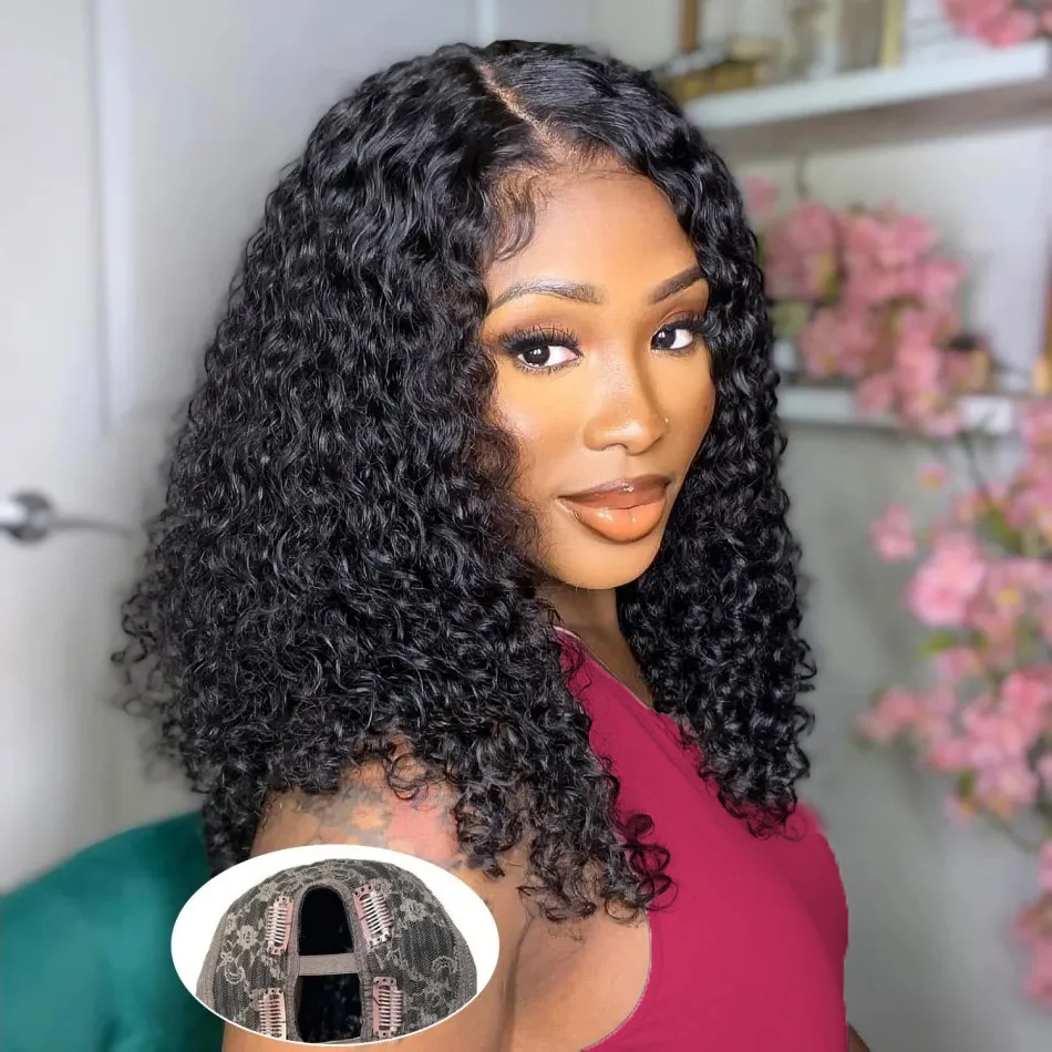 V Part Curly Wig Human Hair No Leave Out No Glue Brazilian Deep Curly Wave Human Hair Wigs for Women 220% Density